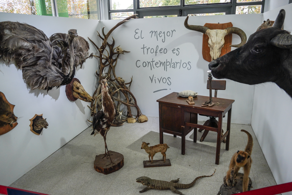 Además, con otras intervenciones realizadas con elementos secuestrados en los procedimientos de control en todo el territorio provincial, la muestra invita a grandes y chicos a ponerse en el lugar de la fauna y reflexionar sobre su relación con el ambiente.