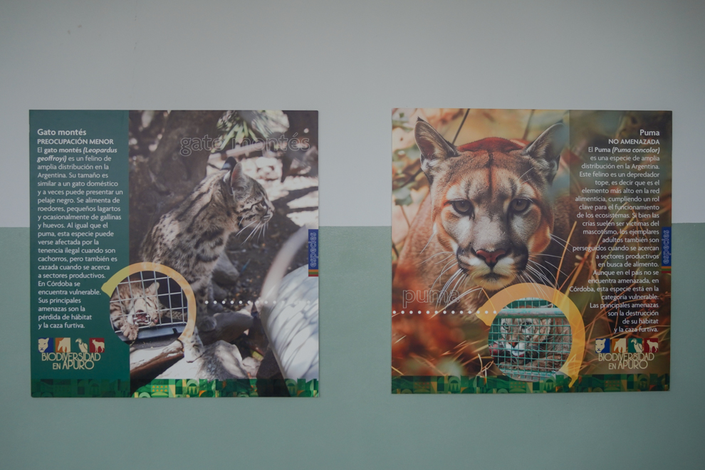 Mediante imágenes impactantes de animales, esta exhibición realiza una propuesta visual muy interesante para aprender sobre las especies de fauna silvestre que suelen verse afectadas por la tenencia ilegal, el mascotismo o que llegan a Córdoba producto del tráfico de fauna silvestre.