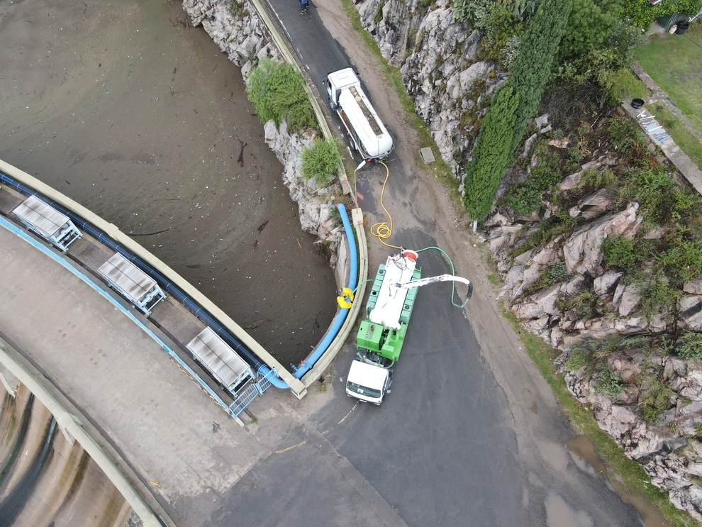 Una vez que los desechos fueron contenidos, se realizó la extracción utilizando un camión cisterna y un camión vactor, que cuentan con la capacidad de trasladar unos 10.000 litros cada uno.